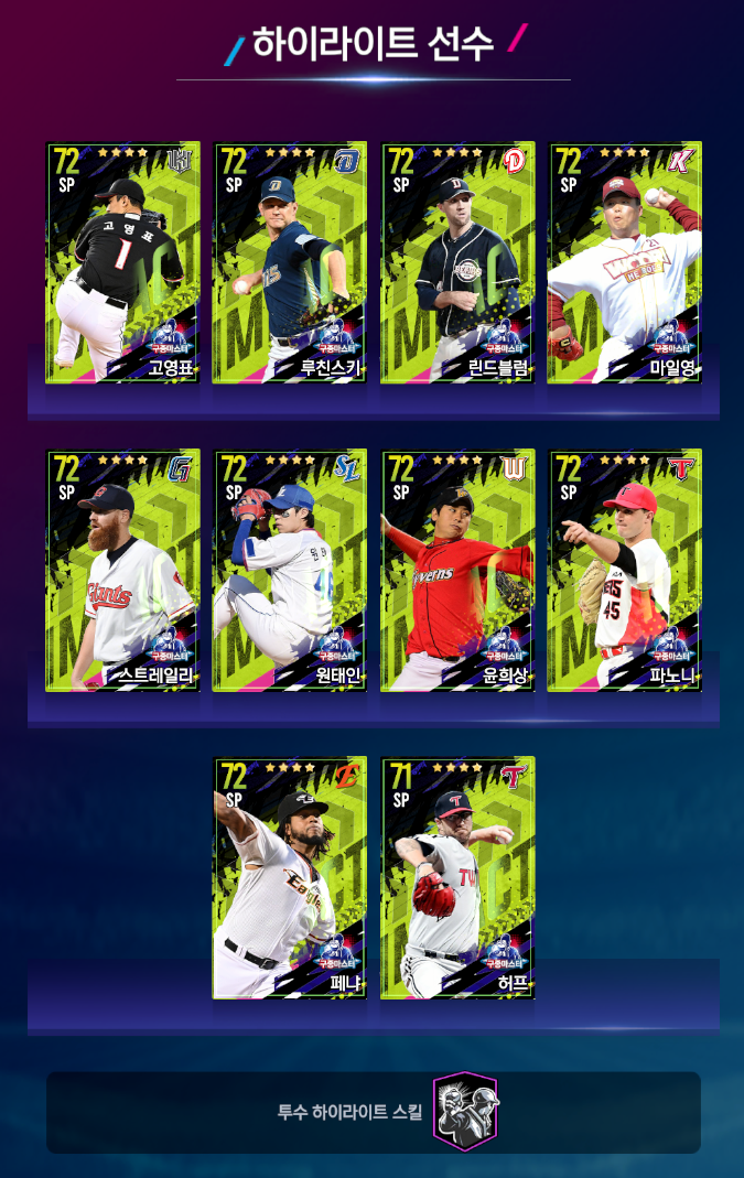 ※ 시그니처 픽업 선수 명단은 아래에서 확인하실 수 있습니다.