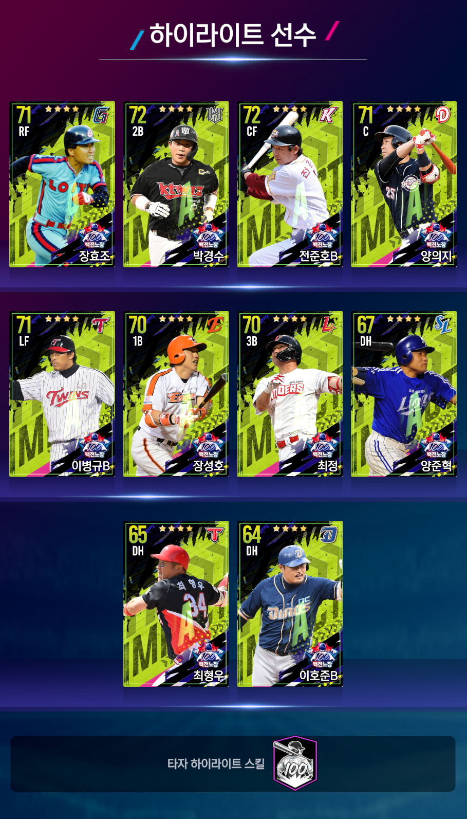 - 50회 구매마다 선택 구단의 하이라이트 임팩트 카드 1장을 확정적으로 획득할 수 있습니다.