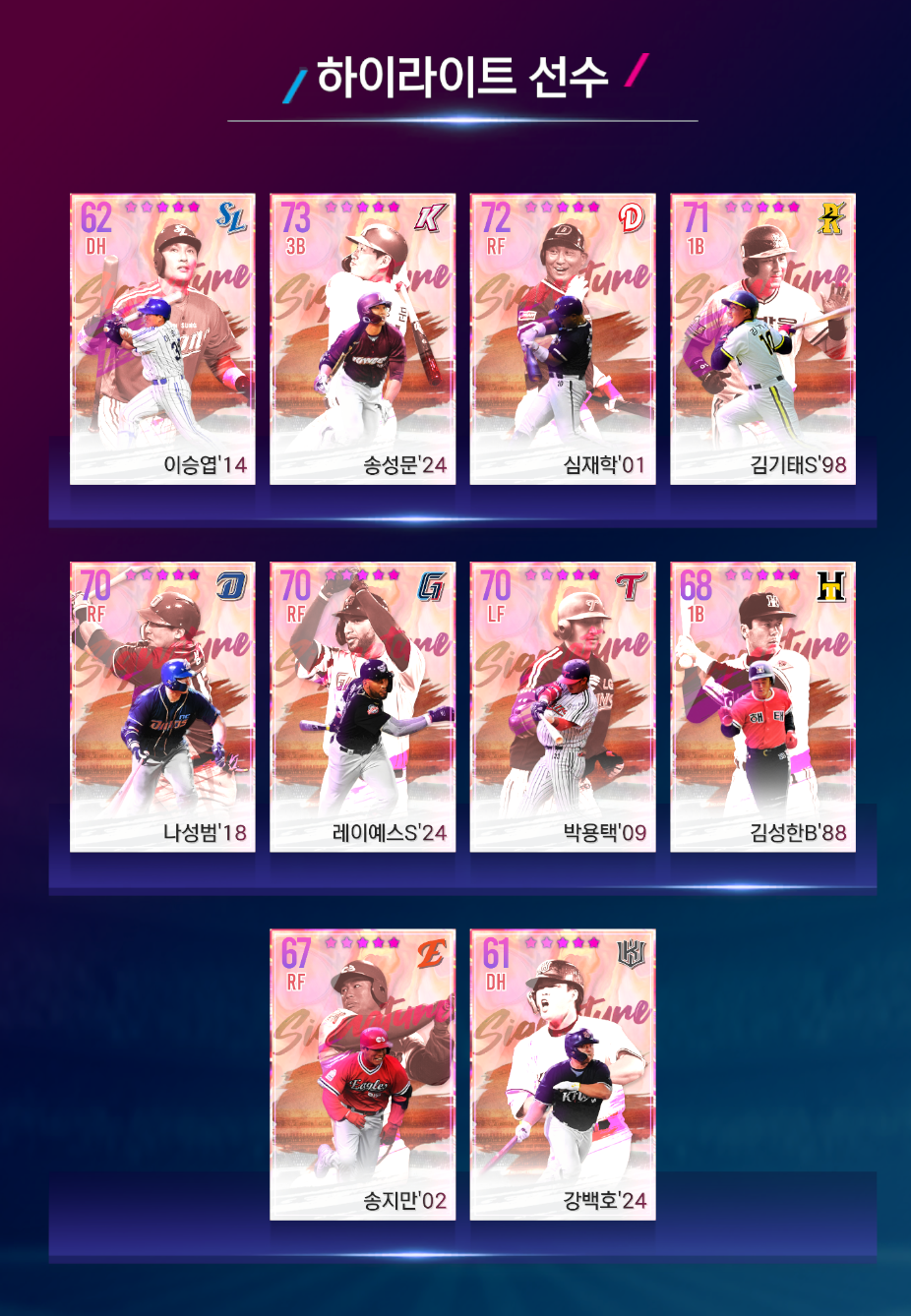 ※ 시그니처 픽업 선수 명단은 아래에서 확인하실 수 있습니다.