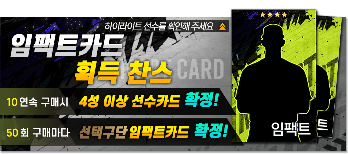 강력한 하이라이트 스킬 1개를 고정적으로 가지고 있는 임팩트 카드를 획득해 보세요!