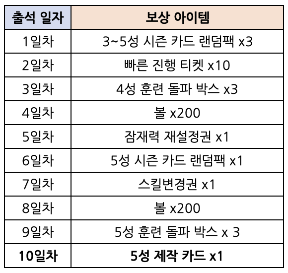 ※ 이벤트 기간 동안 10일 출석 시, 모든 선물을 획득할 수 있습니다.