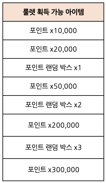 - 획득한 룰렛 이용 기회는 이벤트 기간 동안 유지됩니다.