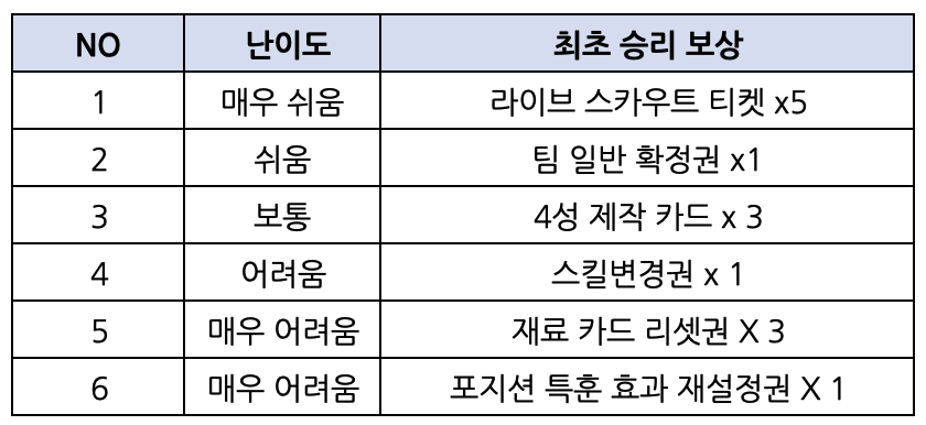 - 이벤트 기간 동안 6개 난이도로 구성된 스페셜 매치를 승리하여 최초 승리 보상과 이벤트 토큰을 획득하세요!