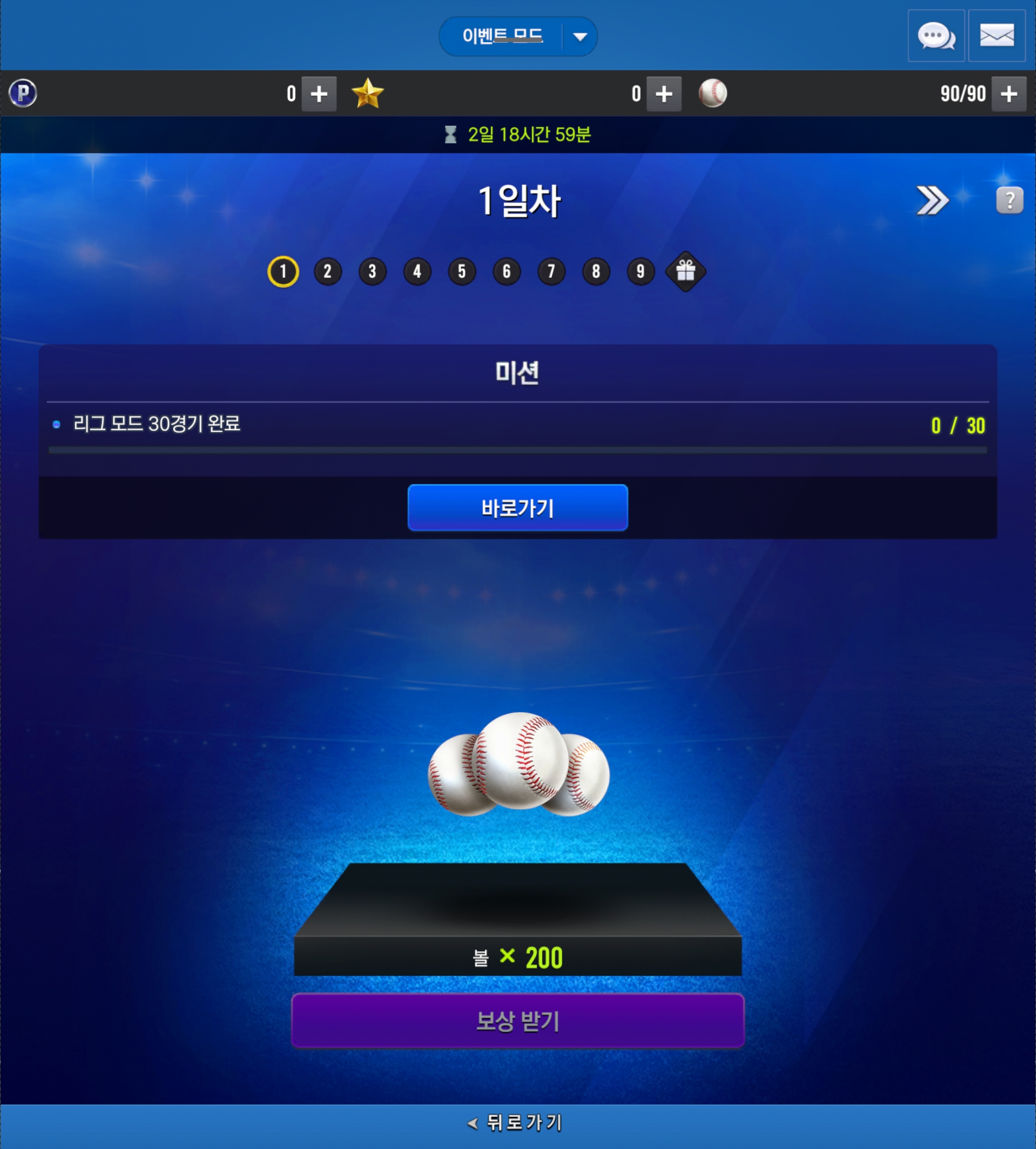 - 이벤트 오픈 후 게임을 새롭게 진행하여도 오픈된 일차 미션까지 미션 수행이 가능합니다.