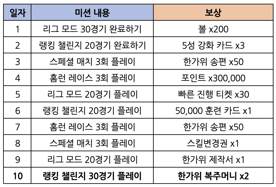 - 이벤트 미션은 10일차까지 진행됩니다.