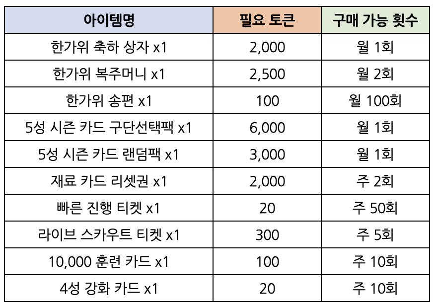 - 획득하신 이벤트 토큰을 이벤트 상점에서 사용하여 다양한 보상을 구매하실 수 있습니다.
