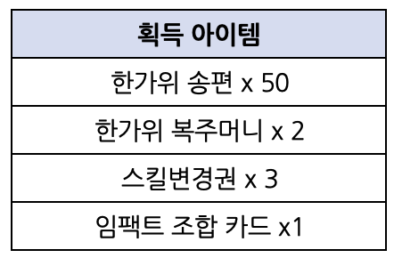 - 한가위 축하 상자 개봉 시 아래 아이템을 모두 획득할 수 있습니다.