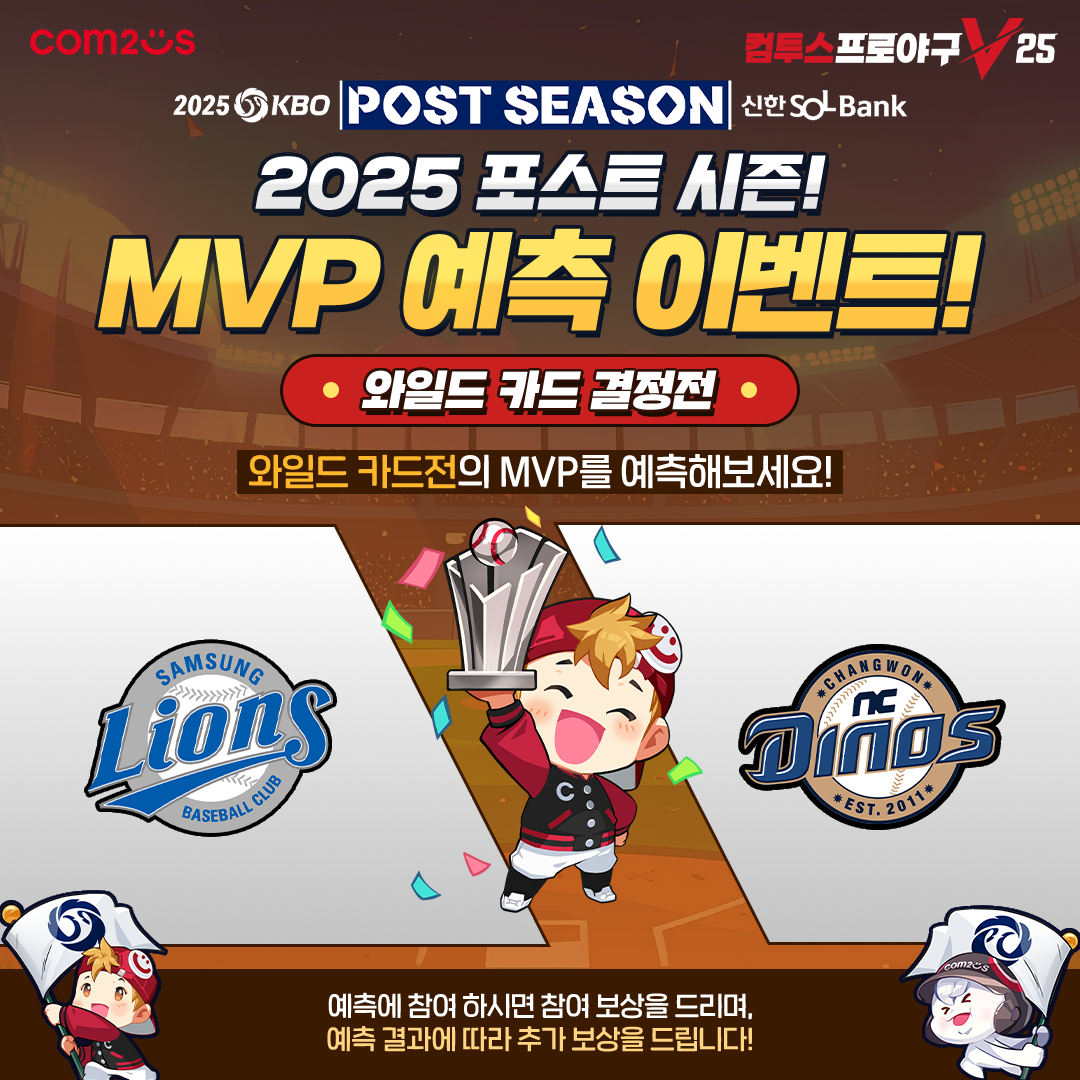 이상으로 와일드 카드 시리즈 MVP 예측 이벤트 안내를 마치겠습니다.