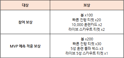 와일드 카드전 종료 후 MVP 예측 성공 시 추가적인 보상을 지급해드립니다!