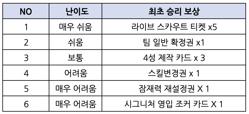 ▶난이도 최초 승리 보상