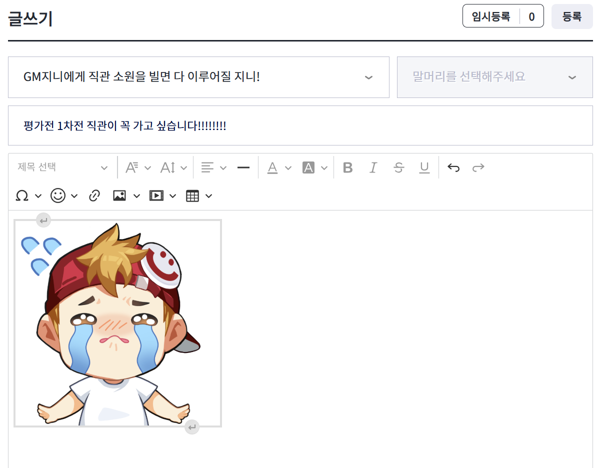 3. 제목을 입력 후 내용에 본인 구단 소개 및 자랑과 국가대표 평가전 1,2차전에 가야되는 이유를 작성해주세요!