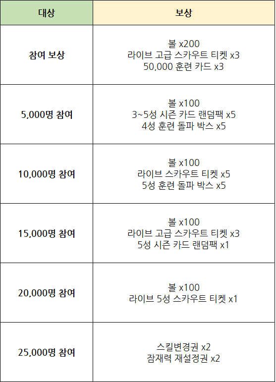 - 참여해주신 모든 구단주 분들께 참여 보상을 드립니다!