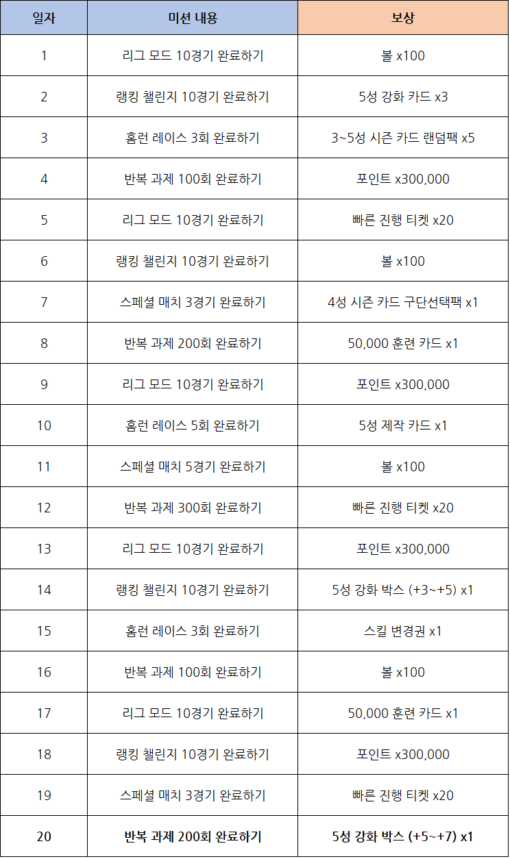 - 이벤트 미션은 20일차까지 진행됩니다.