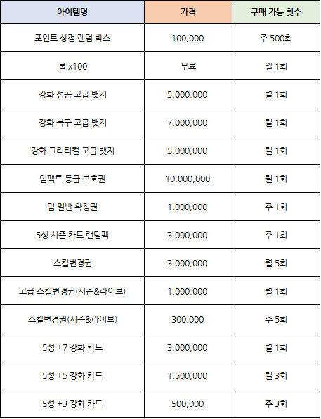 포인트 상점 랜덤 박스, 임팩트 등급 보호권, 강화 성공 고급 뱃지 등