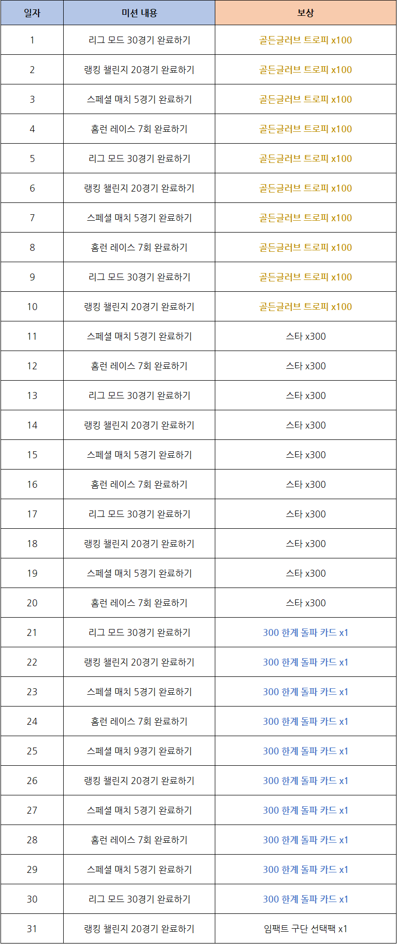 - 이벤트 미션은 31일차까지 진행됩니다.