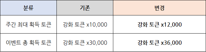 ※ [주간 미션] 으로 획득하는 강화 토큰 수량이 증가하였습니다.