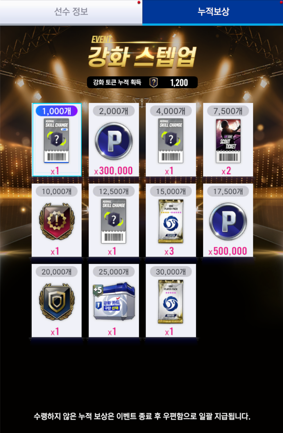 보유 중인 선수 카드를 강화 할 수 있는 강화 스탭업 이벤트가 진행될 예정입니다!