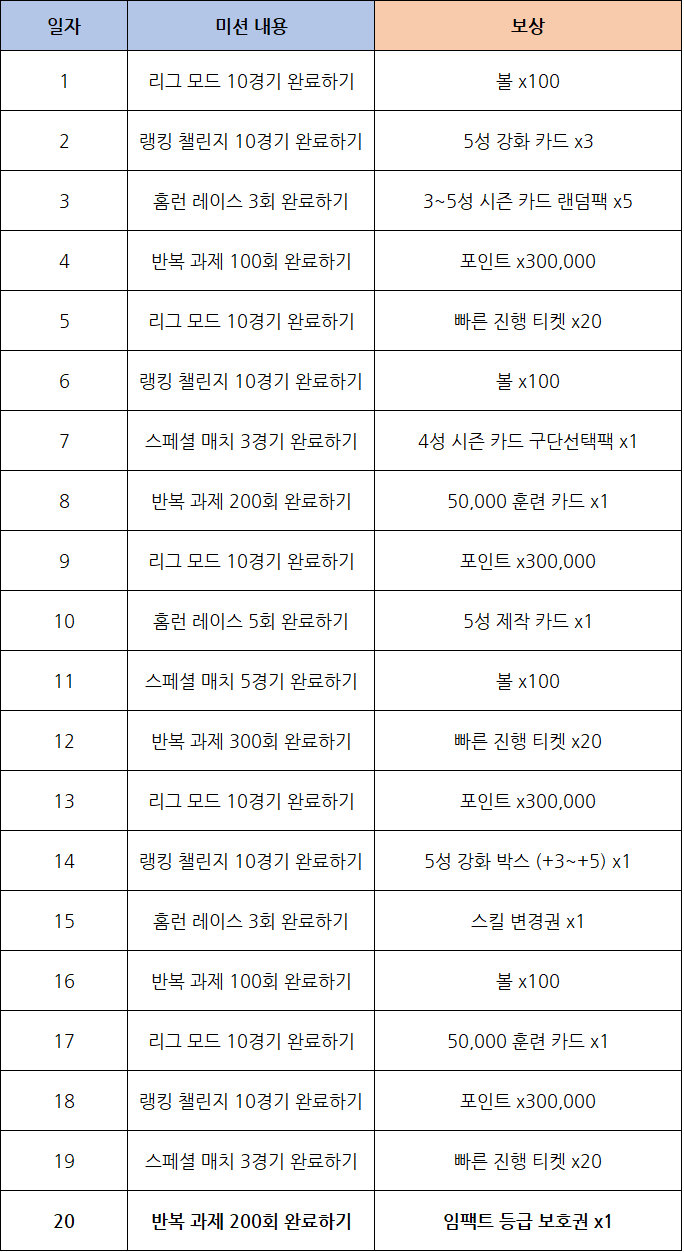 - 이벤트 미션은 20일차까지 진행됩니다.