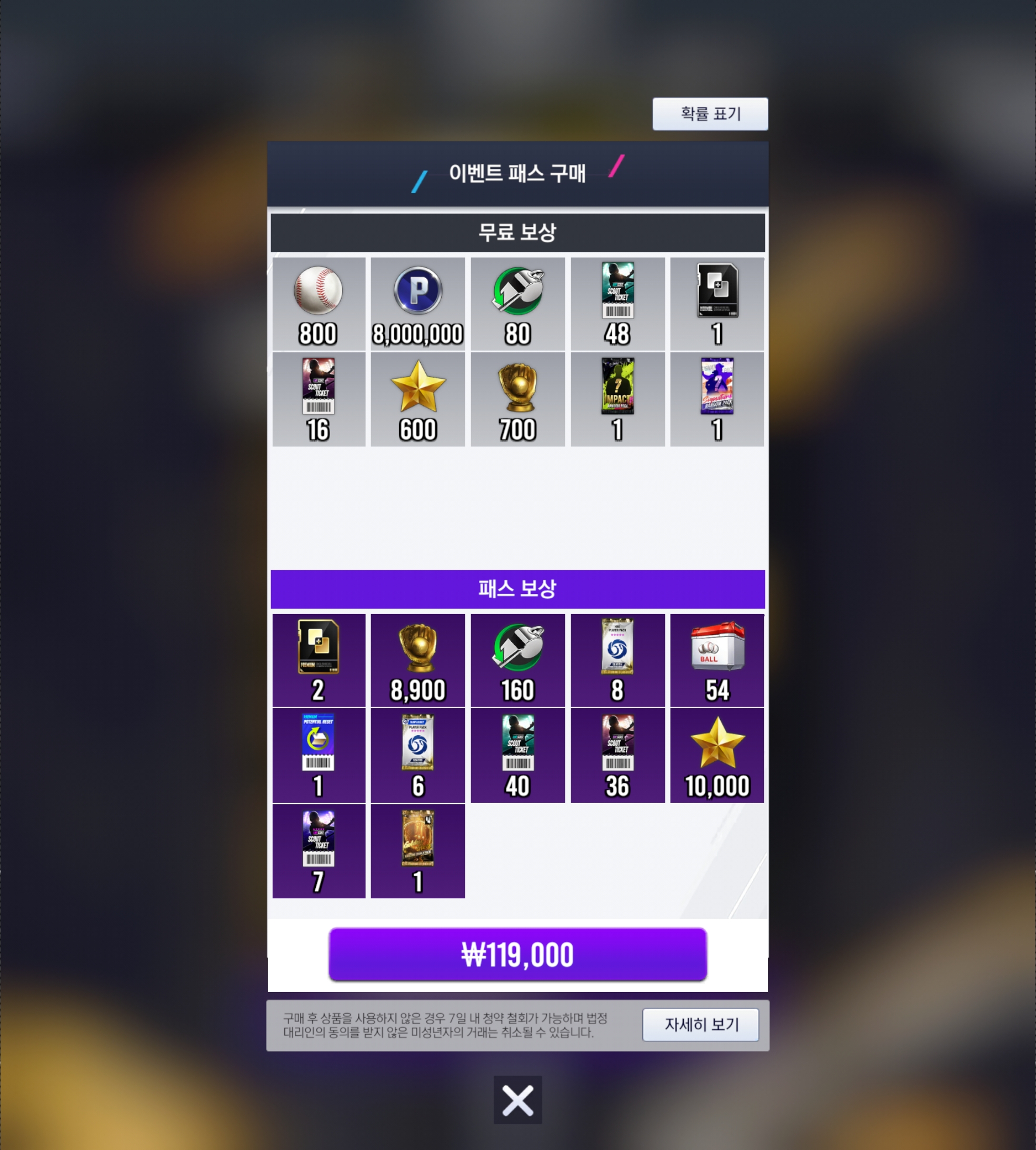 컴투스프로야구V25에서도 다양한 미션을 달성하고 패스 포인트를 누적하여