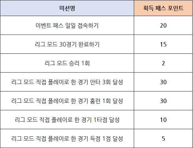 EX) 3,000 패스 포인트 부분까지 해금된 시점이라면 미션을 통해 3,000 패스 포인트까지만 획득 가능