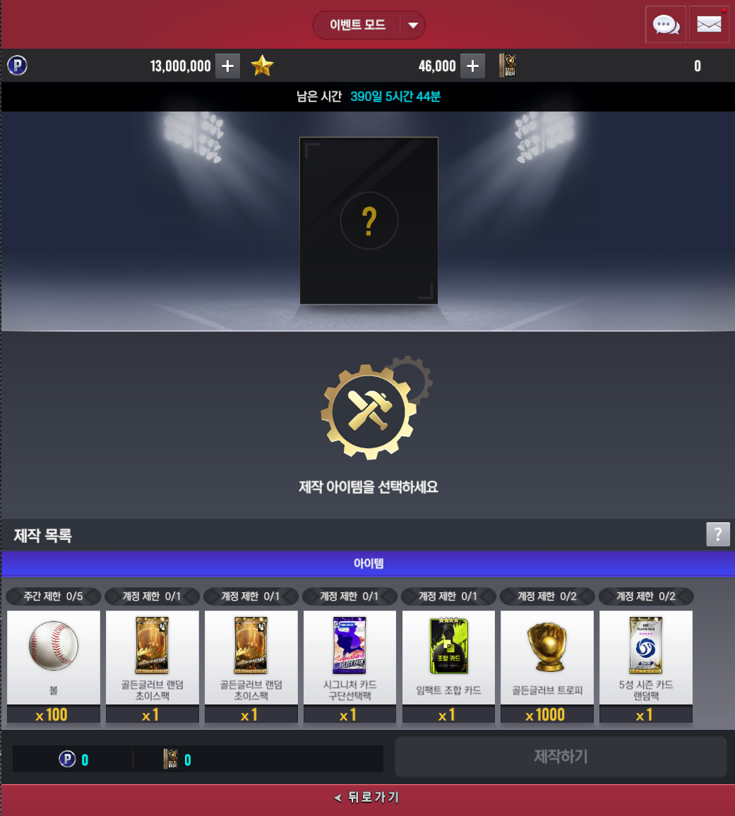 골든글러브 테마의 스페셜 매치 이벤트를 통해 획득한 [황금 제작서]를 활용하여