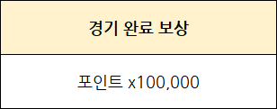 - 정상적으로 경기를 완료하면 플레이 완료 보상을 획득하며 강제 종료 등 비정상적으로 경기를 종료한 경우 보상을 획득하지 않습니다.