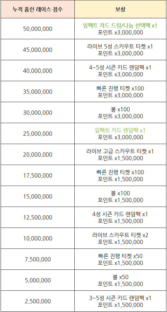 또한 홈런 레이스 VER.2 이벤트를 통해 임팩트 랜덤팩, 임팩트 드림/나눔 선택팩을 획득할 수 있습니다!