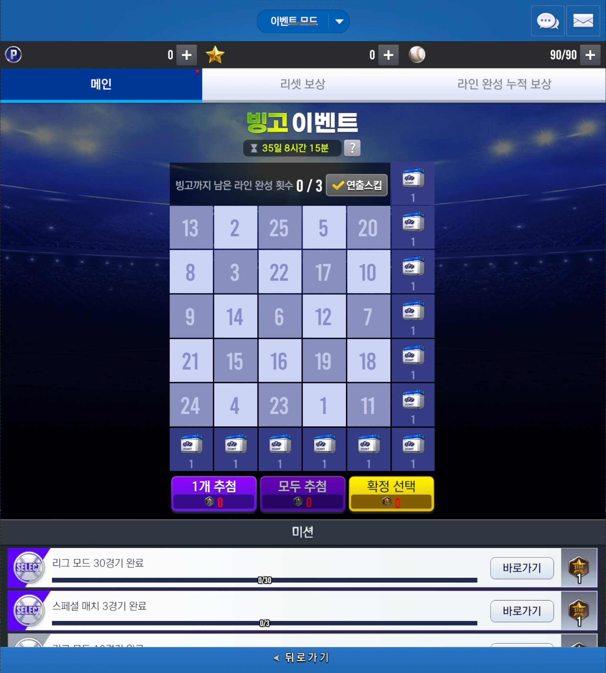 * 스타 챌린지 빙고 이벤트는 메인 화면 우측 상단 [이벤트] 메뉴에서 확인하실 수 있습니다.