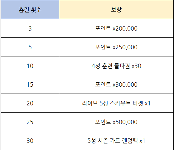 * 정상적인 경기를 1회 이상 완료한 구단주분들은 모두 획득할 수 있는 보상입니다.