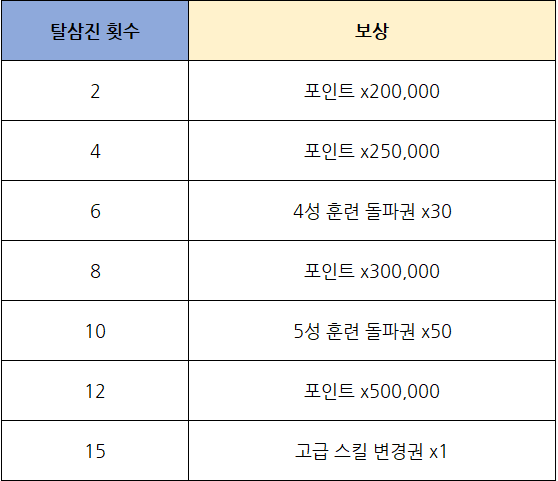 * 해당 이벤트에서는 세트덱, 시너지 및 포지션 특훈 효과가 적용되지 않습니다.
