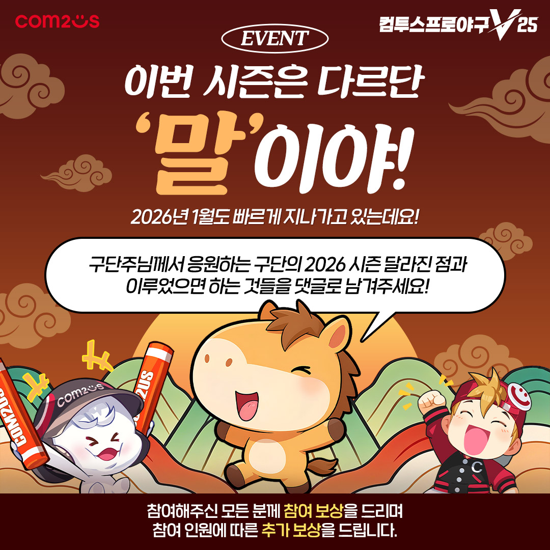 구단주님께서 응원하는 구단의 2026시즌 달라진 점과 이루었으면 하는 것들을 댓글로 작성하면