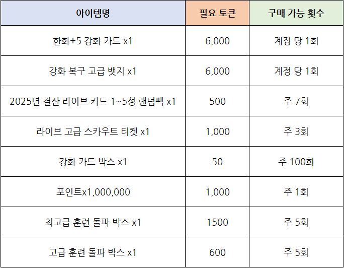 - 스페셜 매치에서 획득한 이벤트 토큰을 통하여 이벤트 상점에서 각종 보상을 구매하실 수 있습니다.