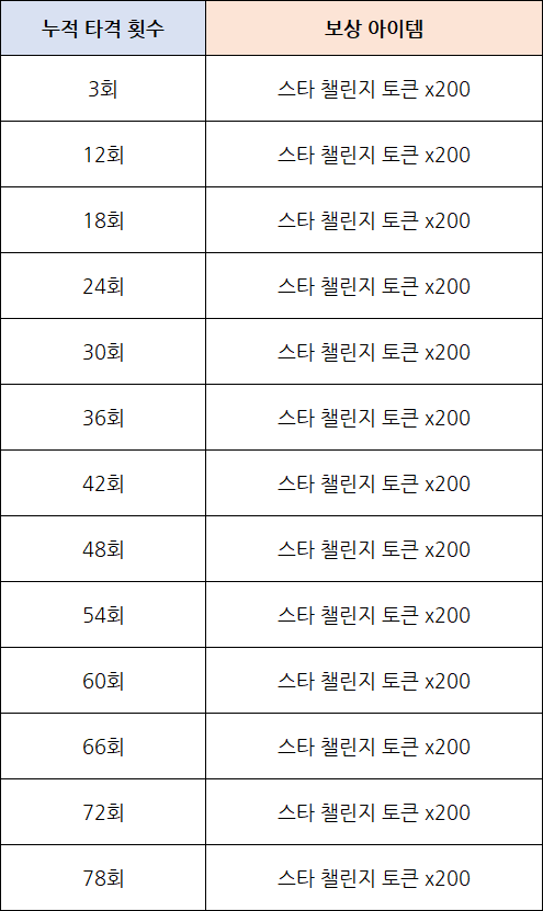 - 누적 타격 횟수에 따라 추가 보상을 획득할 수 있습니다.