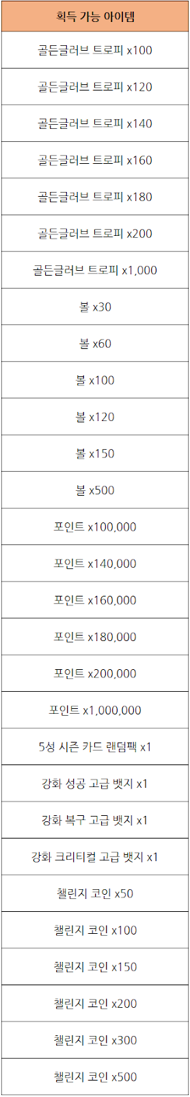 - 이벤트 기간 동안 진행되는 랭킹 챌린지의 시즌이 종료될 때 순위가