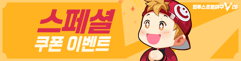 컴투스프로야구V26 쿠폰 교환소 사이트를 통하여 직접 입력하실 수 있습니다. [쿠폰 교환소 사이트 바로가기]