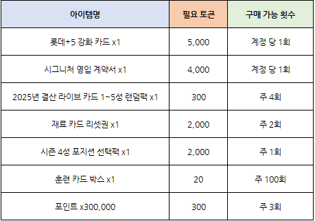 - 획득한 이벤트 토큰을 이벤트 상점에서 사용하여 다양한 보상을 획득할 수 있습니다.