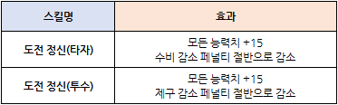 - 타자와 투수가 각각 메이저 스킬 중 도전 정신(타자), 도전 정신(투수) 스킬을 보유하고 있다면, 페널티 수치가 감소되기에
