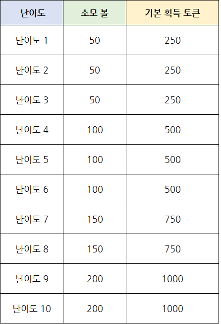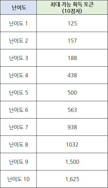 [난이도별 기본 획득 토큰]