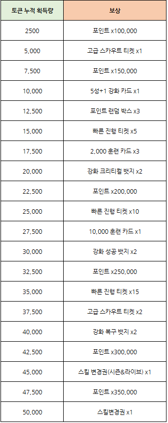 - 보유하고 있는 이벤트 토큰 수에 따라서 누적 보상을 획득 하실 수 있습니다.