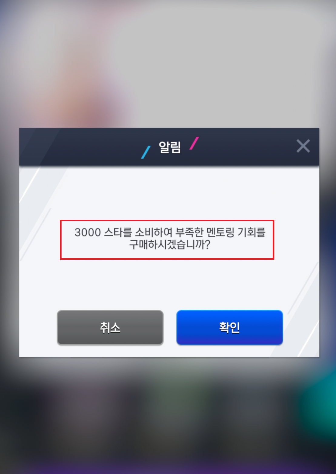 EX) 멘토링 진행 횟수가 6회 부족할 경우 3,000 스타를 사용해 멘토링 진행 횟수를 구매하실 수 있습니다.