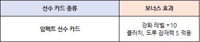 - 이번 이벤트 보너스 효과를 받는 선수 카드 종류를 확인하여,
