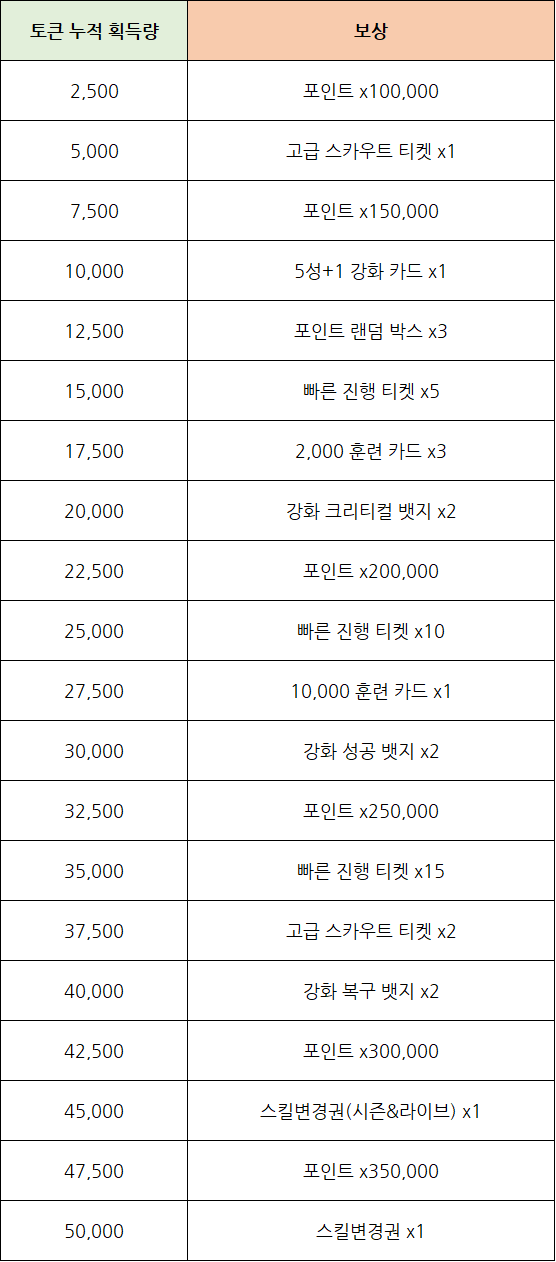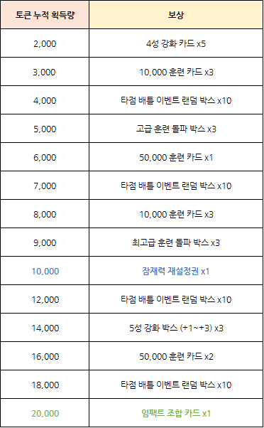 - 보유하고 있는 이벤트 토큰 수에 따라서 누적 보상을 획득하실 수 있습니다.