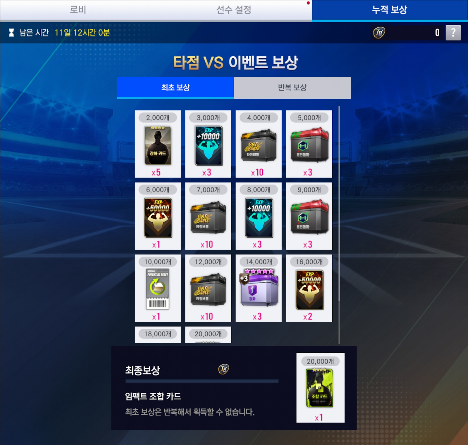 임팩트 선수들을 타점 배틀 이벤트를 진행하고 다양한 보상도 획득할 수 있는