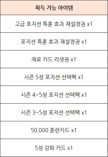 - 타점배틀 이벤트 랜덤 박스 개봉 시에는 아래 아이템 중에서 1종을 획득할 수 있습니다.