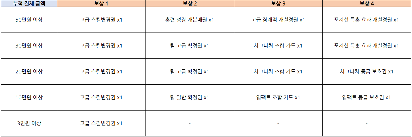 EX) 누적 결제 금액 50만원 이상 시 ‘모든 보상’ 획득 가능
