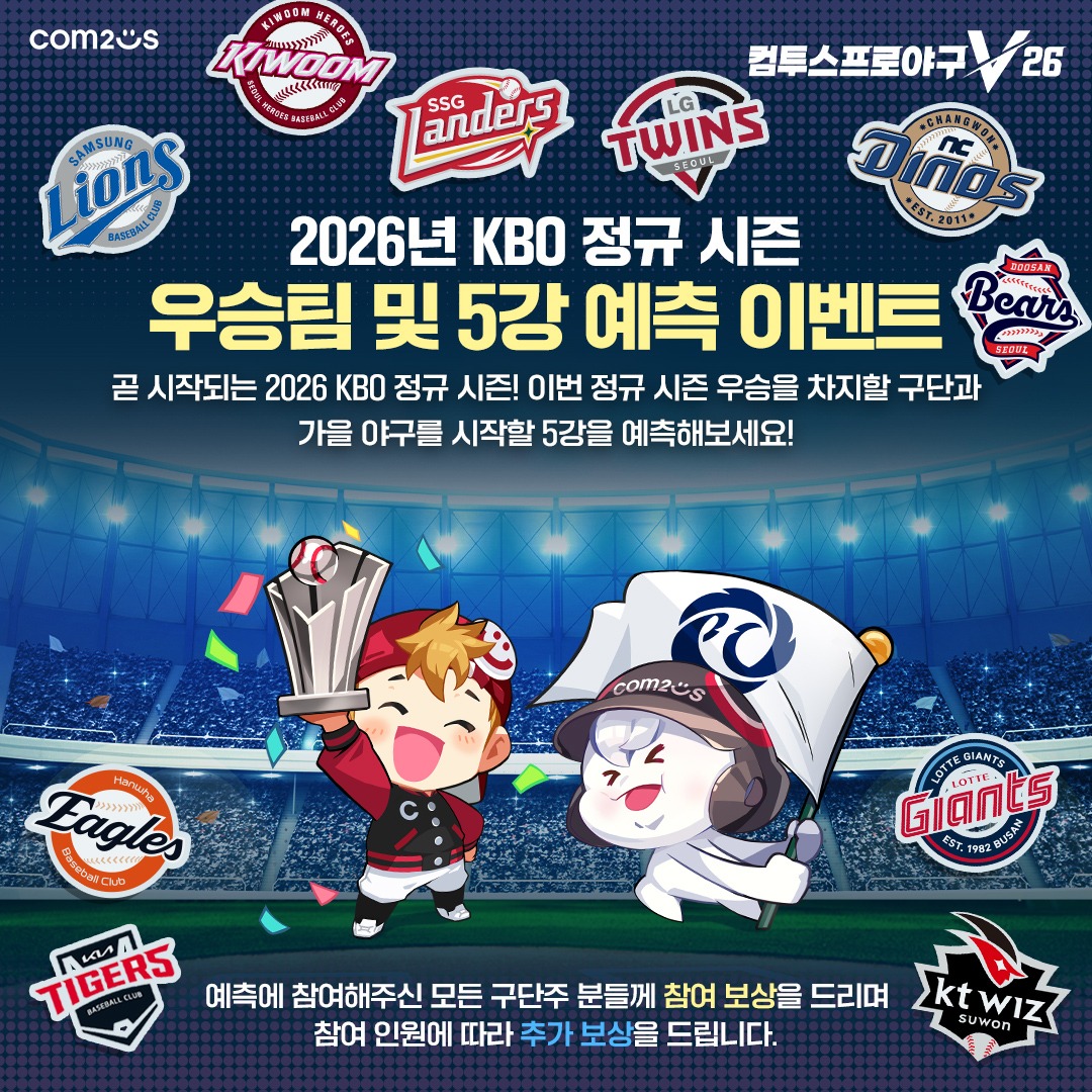 2026년 KBO 정규 시즌 우승 및 5강 예측 이벤트가 진행됩니다.