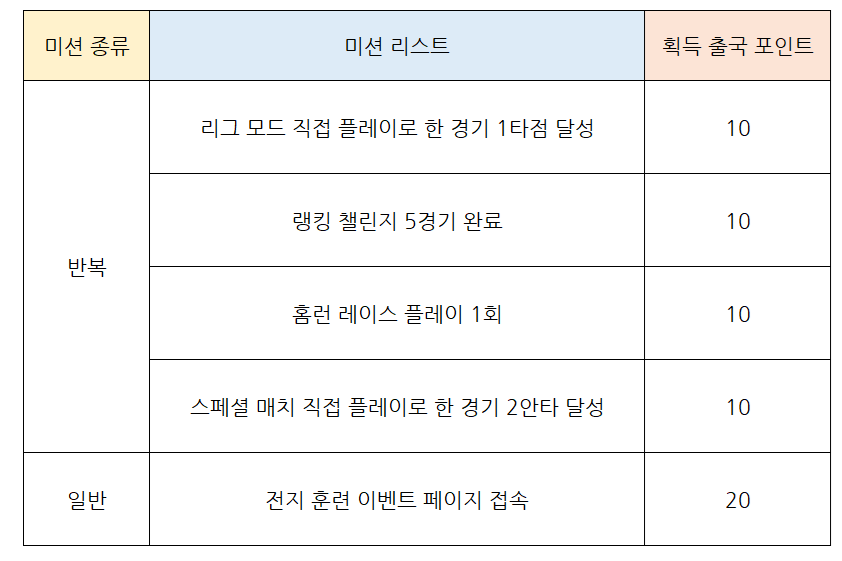 * 미션 별 출국 포인트의 일일 획득 제한은 없으나, 날짜 별 오픈되는 단계까지만 획득이 가능합니다.