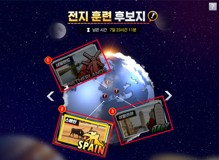 - 전지 훈련 이벤트는 메인 화면 우측 상단 [이벤트] 메뉴에서 확인하실 수 있습니다.