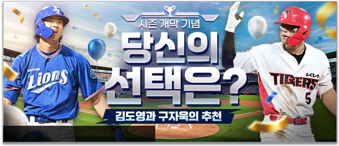 - 개막을 맞이하여 이벤트 미션을 수행하면 구자욱 선수와 김도영 선수가 각각 보상을 추천해 드립니다.