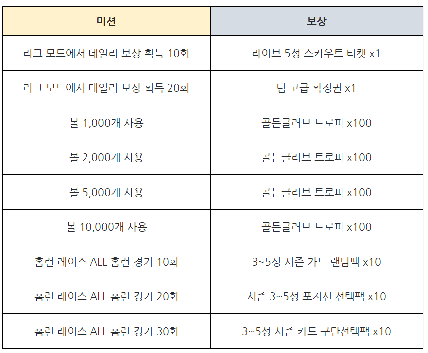 - 이벤트 기간 동안 구단주분들의 성장을 위한 다양한 지원이 진행됩니다.